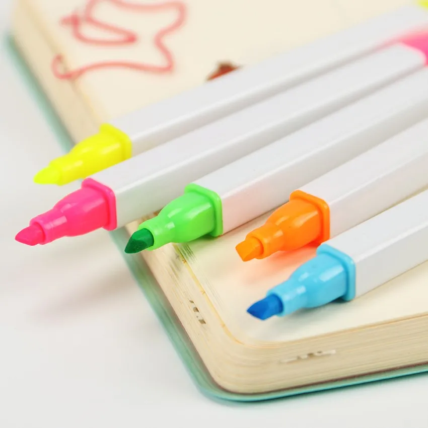 5 шт./упак. ярких цветов флуоресцентный маркер для белой доски аромат для нанесения хайлайтера рисования акварель набор канцелярских принадлежностей