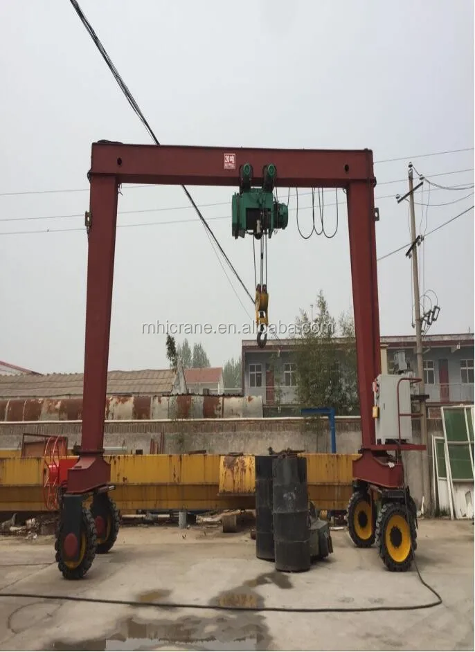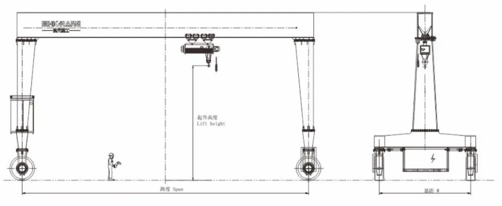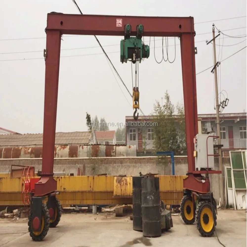 SBR Mobile Single Beam Rubber Tire Gantry Crane 4 Wheel Steering Rubber Crane is used together with electric hoist or winch, which is a small and medium-sized gantry crane travelling with rubber tyre. Steering and travelling by hydrualic control, it can achieve two wheel steering and four wheel steering.