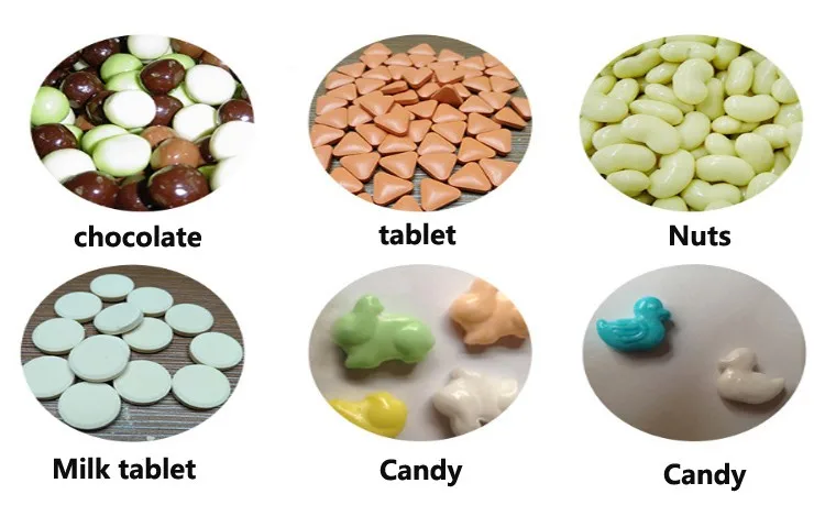 The candy coating machine can make all kind of candy and tablet covered different colors as you want.