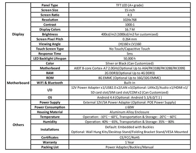 * High-light screen: can customize ≤1500cd/m2