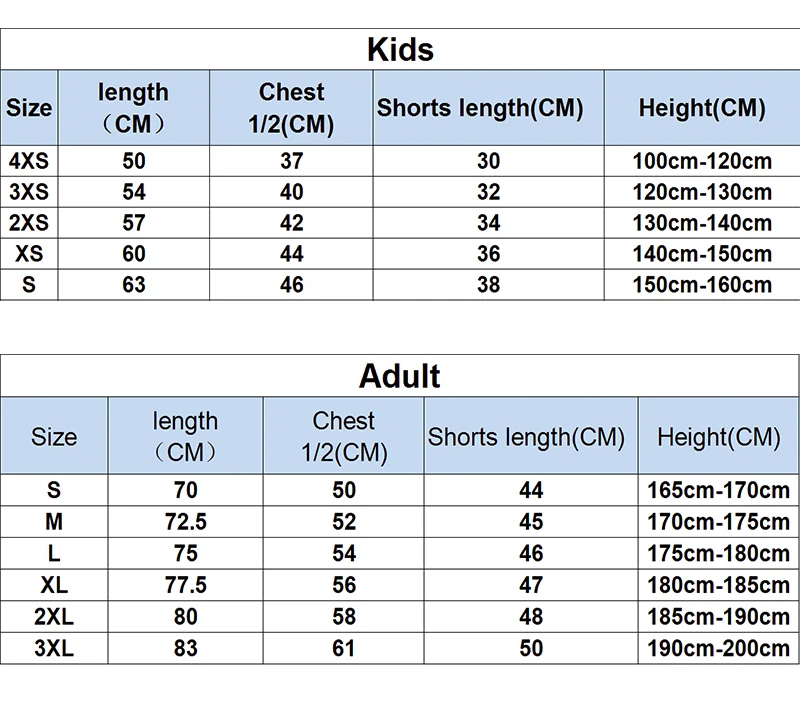 Adult Size | S,M,L,XL,2XL(adult European size) L,XL,2XL,3XL,4XL( adult Asian size) |