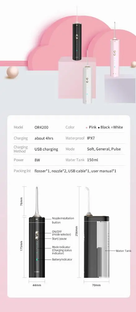Oral Irrigator Dental Electric Portable Toothbrush Care Jet Tooth Cordless Teeth Hygiene Floss And Whitening Water Pick Flosser