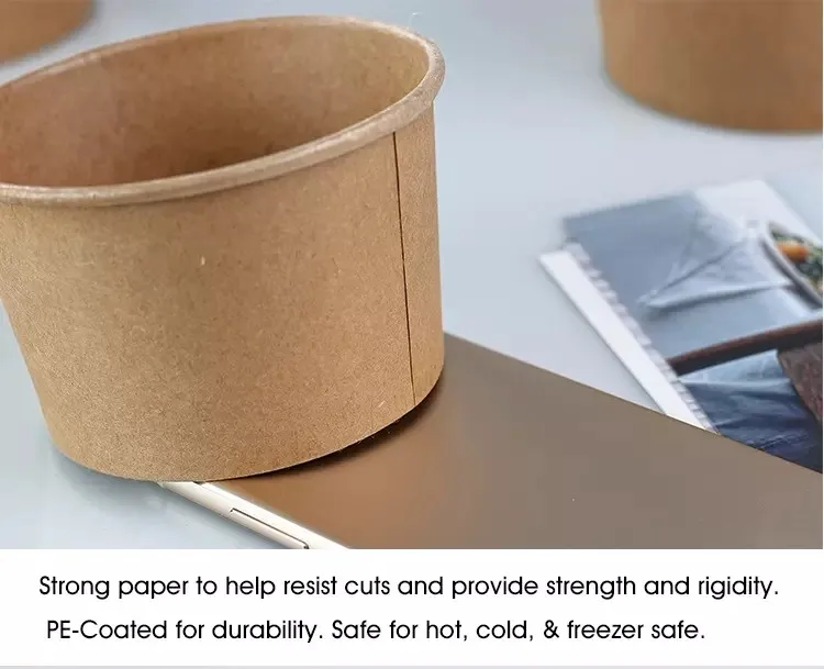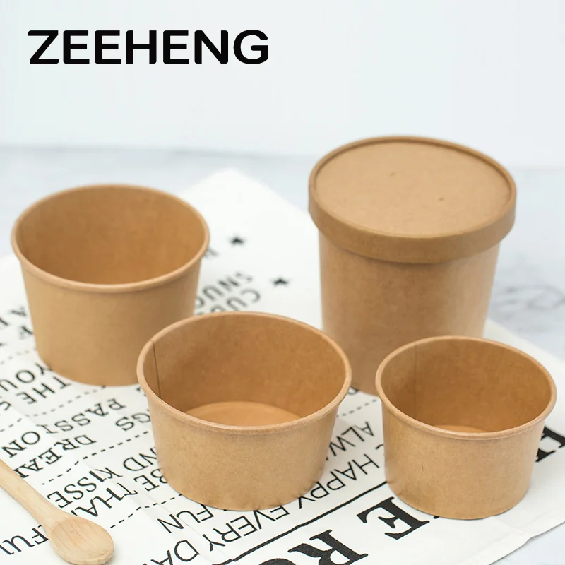 These breathable 2-ply paper covers are sealed and retain the contents at the right temperature. Made from high quality cardboard and can be used for both cold and hot food. Paper containers with lids are an excellent solution for packaging and selling soups, stews, pasta, salads, cereals, as well as for ice cream, nuts, dried fruits and other products. The possibility of branding.