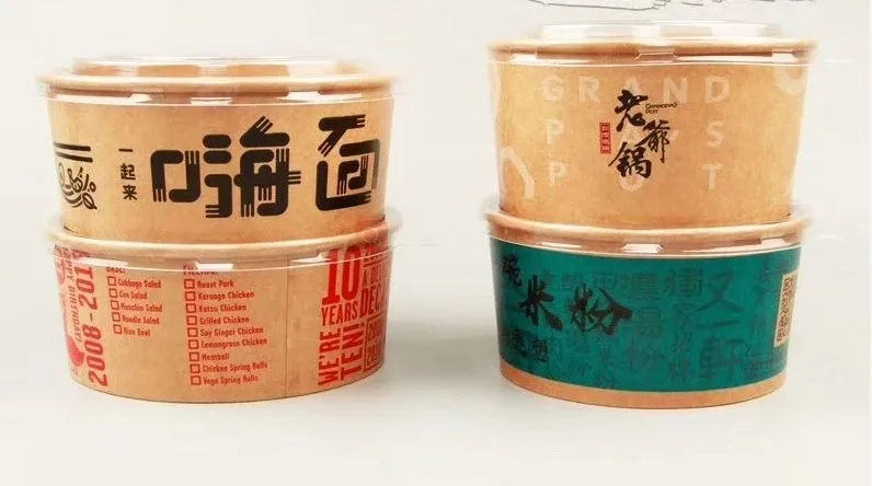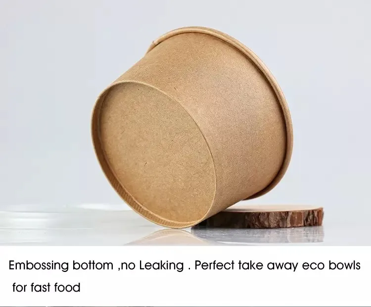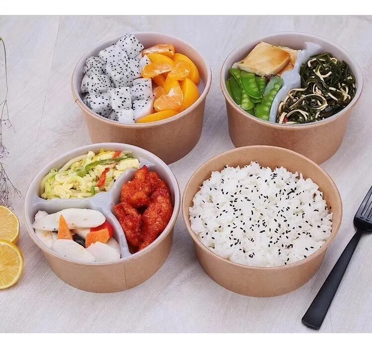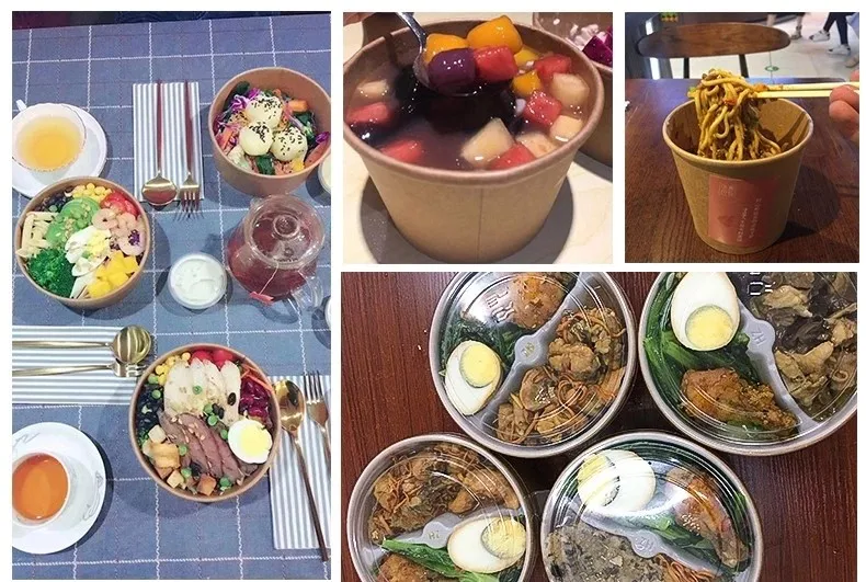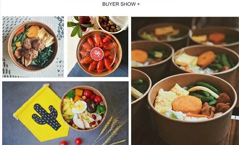 Kraft paper disposable rice bowls are made of 100% Eco-friendly and environmental kraft paper, leak-proof and stain-resistant. Customer's own design is welcome. These disposable rice bowls can hold food ranging from meats to veggies to sauces. We provide bowls in a variety of sizes to handle everything from side dishes to super-sized entrees. Whether your guests are looking to eat their meal on the go or while watching their favorite show, the special design of these bowls are sure to satisfy every customer.