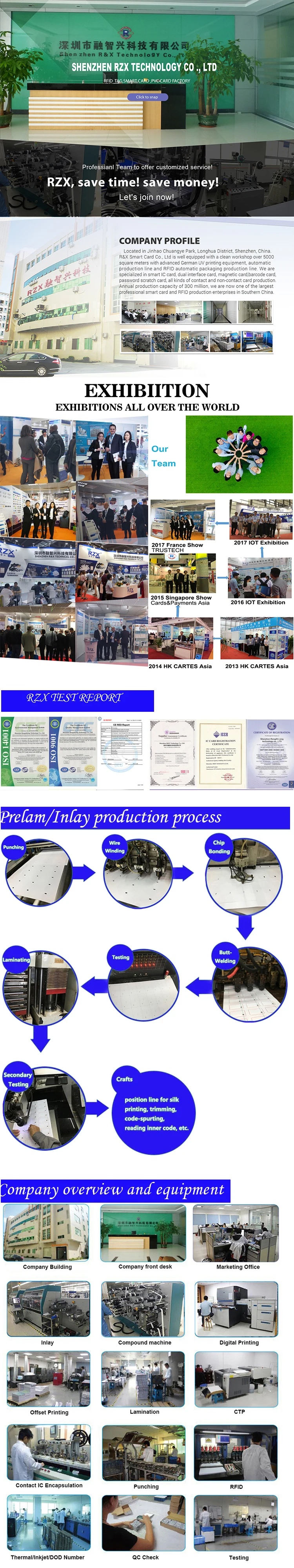 Расположенная в Jinhao Chuangye парк, Дафу индустриальная зона Road, улица гуанлан, Longhua New Tech Zone, R & X смарт-карты обратную связь о том, что вы хотите, ltd хорошо оборудована чистой мастерской, которая охватывает более 5000 квадратных метров с передовым немецким (SM52-4) УФ-печатным оборудованием, автоматической производственной линией на международном уровне и RFID автоматической упаковочной производственной линией. Мы специализируемся на смарт-картах IC, двух интерфейсных картах, магнитных картах, картах штрих-кодов, картах с защитой от царапин, всех видах контактных и бесконтактных карт. Наряду с годовой производственной мощностью 300 миллионов, мы в настоящее время являемся одним из крупнейших профессиональных предприятий по производству смарт-карт и RFID в Южно-Китайском регионе.