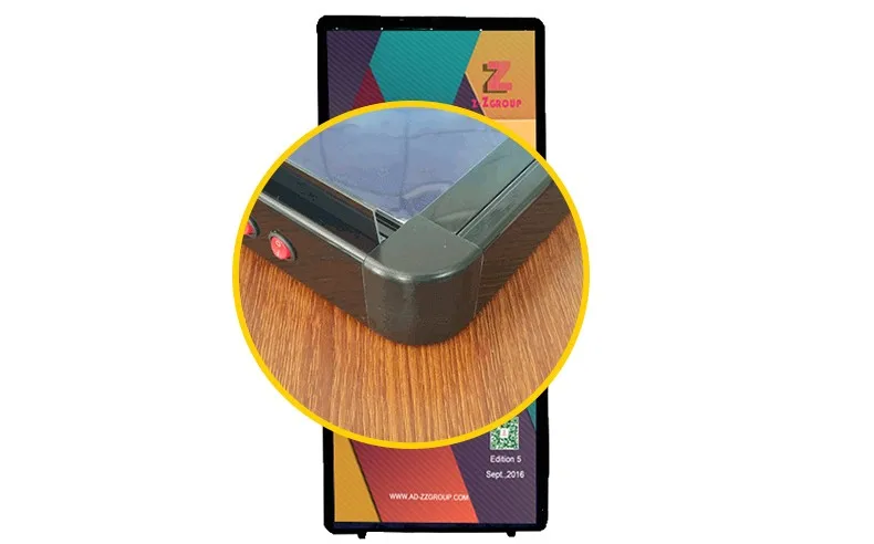 We make the feet of the light box with high-denstiy rubber material,which will avoid the slide when the light box is standing.