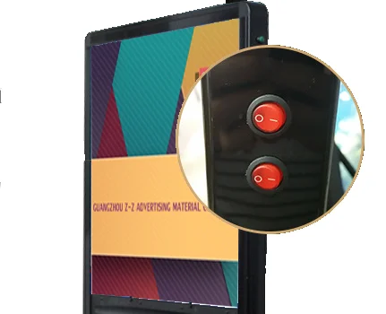 here're two buttons on the side of the light box,one will control the lights to enlighten the poster and one will control the LED display screen.