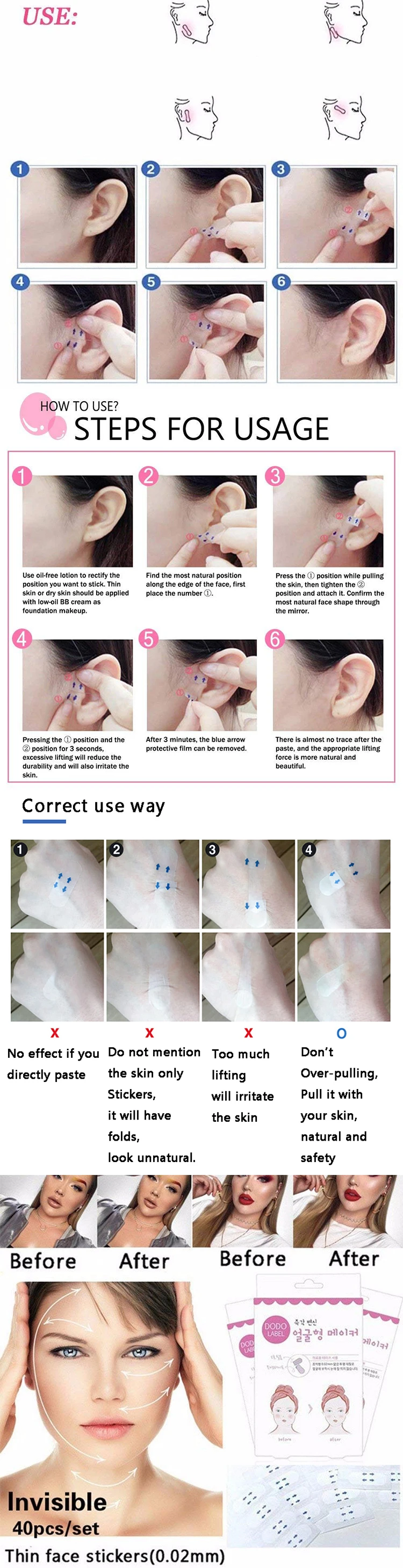 * Lifts and tightens skin instantly, shape V face.