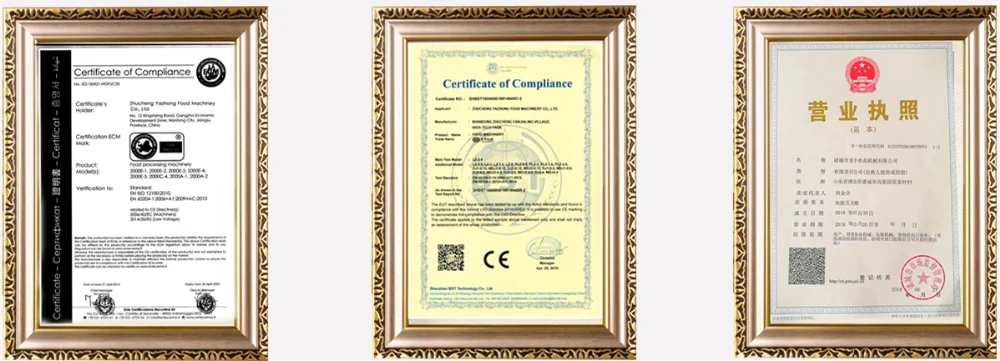 YAZHONG food machinery, founded in 2009, is a professional global supplier of food equipment. Company is a large-scale modern manufacturing company specialized in the R&D, manufacturing of food processing , which covers an area of 18,000 square meters. We provide a variety of compete production line to our customers.Company's products have been certified by CE and ISO9000(1)-2000 international quality management system certification. Our food equipment has been exported to Russia, Canada, USA, Britain, Germany and so on.We enable customers high quality products, short delivery period and superior after-sales service.Welcome to our Company.