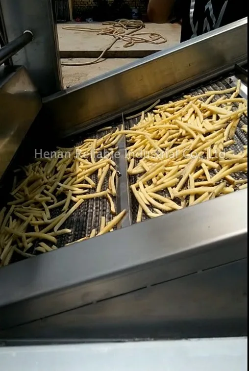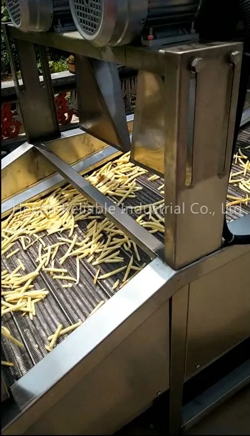 Эта линия отличается высокой автоматизацией, большой емкостью, низким энергопотреблением, экономией рабочей силы, малым районом, простотой в эксплуатации, хорошим качеством и высокой прибылью. Линия главным образом включает в себя процесс для промывки картофеля пилинг, резка, ручная стирка, беля, оборудование для обезвоживания, жарки, обезжиривание, замораживания и упаковки. Мы предоставим вамФормулаИТехнология guidenceБесплатно, чтобы убедиться, что вы можете сделать высококачественный и вкусный картофель фри. С небольшими изменениям и добавить приправы машины в линию, вы можете сделать картофельные чипсы.