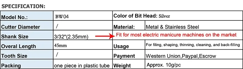 6) лучшая Универсальность: с диаметром хвостовика 2,35 мм (3/32 дюйма), наши биты подходят для большинства электрических маникюрных машин на рынке