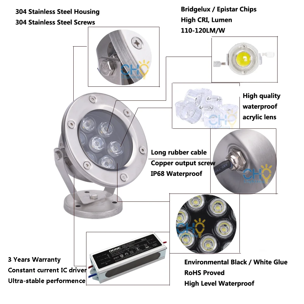 Используется Драйвер IC, сохраняет длительный срок службы, безопасность и стабильность, с клеем внутри, чтобы обеспечить более высокую водонепроницаемость, с 3 годами гарантии