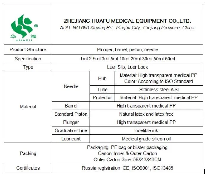 Zhejiang Huafu Medical Equipment Co., Ltd. was established in 1983, it is one of Chinese leading medical devices manufacture. It is principally engaged in the research and development, production and sale of single-use medical devices. HUAFU is certified by TUV SUD with CE and ISO13485 certificate since 2003, HUAFU holds the long-term development of its brands in high regard places strong emphasis on the quality of its products, control the quality very strictly. it has an extensive sales network comprising 30 countries and regions, including the United States, Germany, Australia, Russia, and Brazil,etc.