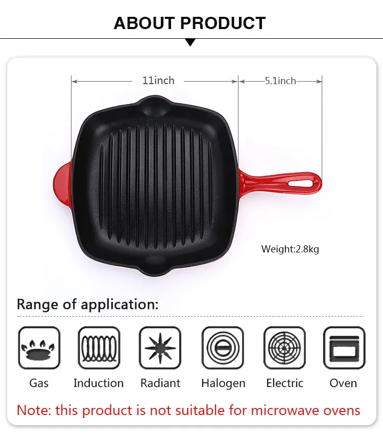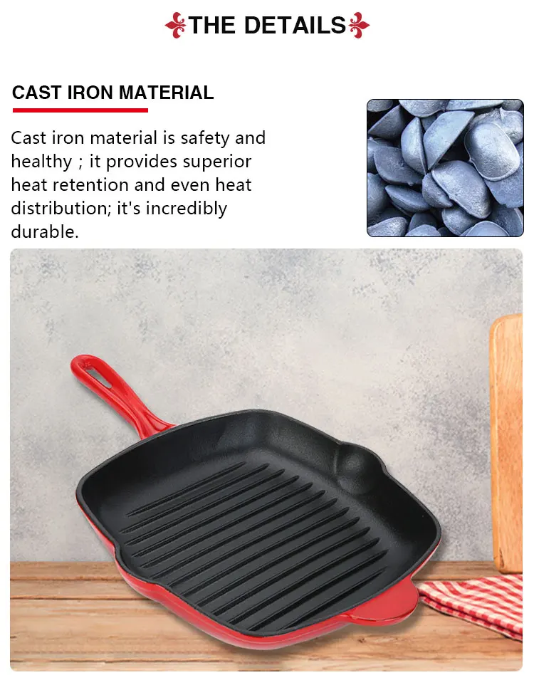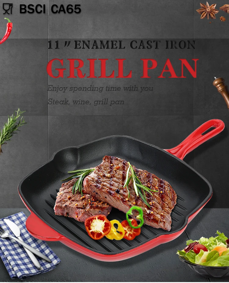 Квадратная эмалированная чугунная сковорода для гриля и