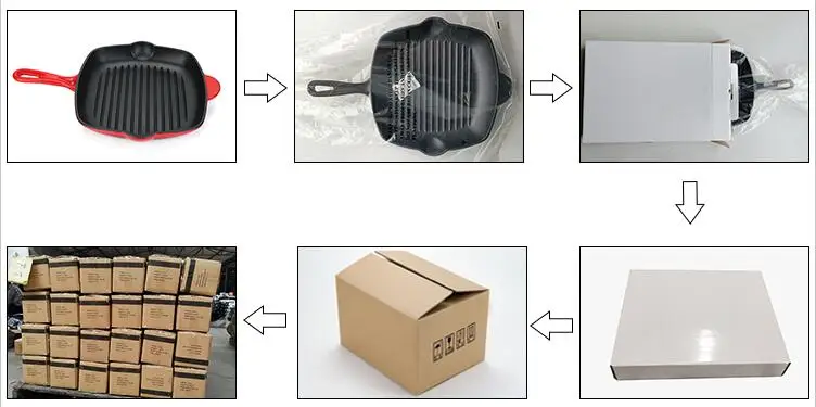 Since cast iron cookware is heavy, we generally choose sea and railway transportation.The packaging process is rigorous to ensure that the goods will not be damaged during transportation.