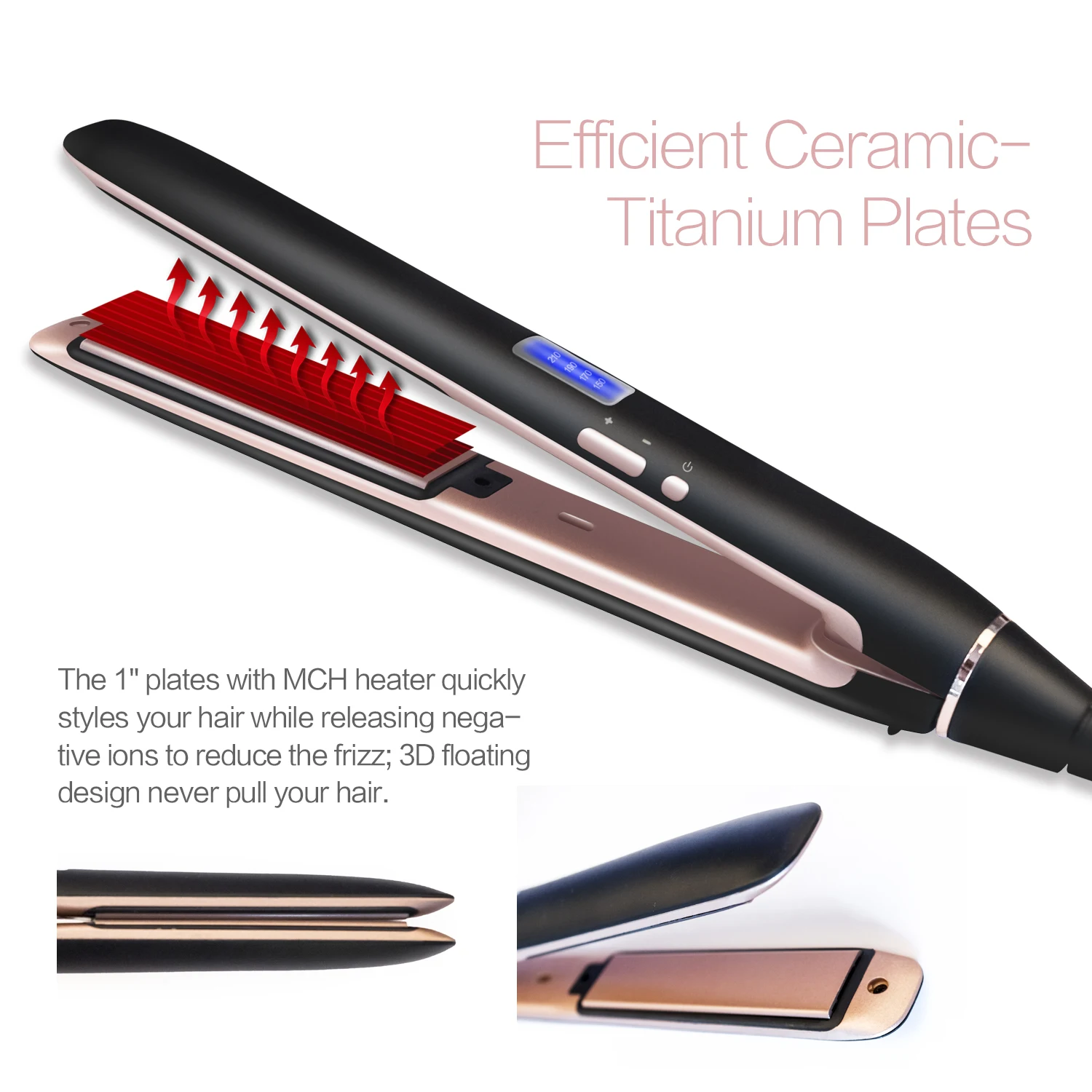 * Our hair iron has alternating beveled platforms that create volume pockets in the under layers of hair.