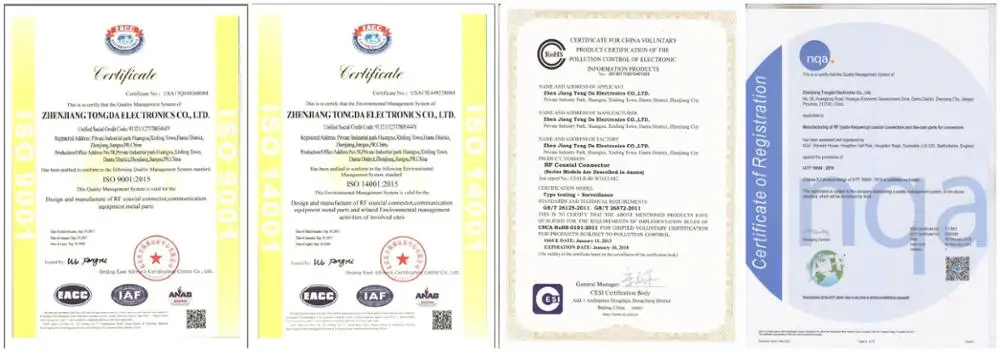 Our main products are.RF connector(BNC,N type,7/16 DIN,EIA,TNC,SMA,SMB,MCX,MMCX,UHF,RCA,etc), Surge Arrester, Cable Assemblies, Zinc Alloy Die casting parts.