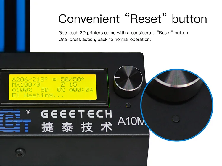 Geeetech A30 Large building volume touch screen power off resume filament detector remote control open source 3d printer