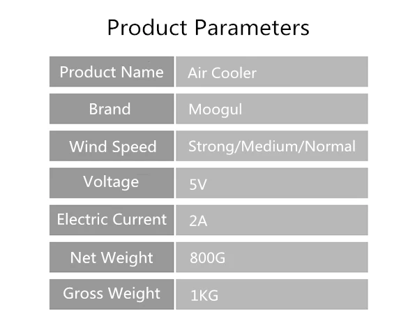 Product Name | USB Mini Portable Air Conditioner Humidifier Purifier Colorful Light Desktop Air Cooler Fan Air Cooler For Office Home | ||||
