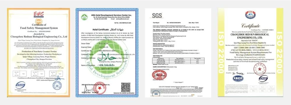 Компания Changzhou Red Sun Biological Engineering Co.,Ltd была основана в 1998 году и расположена рядом с городом Шанхай. Мы специализируемся на исследовании, производстве и продаже немолочных сливок, кофейных сливок, растительного порошка с высоким содержанием жира, порошка для взбивания кремов и других пищевых ингредиентов для различных видов пищевой промышленности.