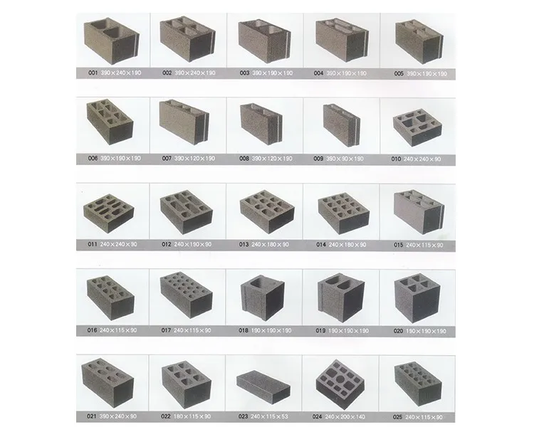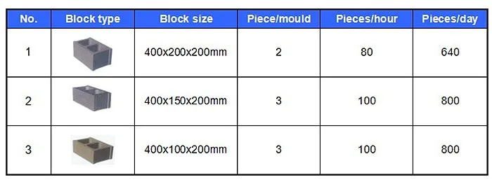 One machine attaches one set of free hollow mould.The normal block type and theoretical capacity are as followed: