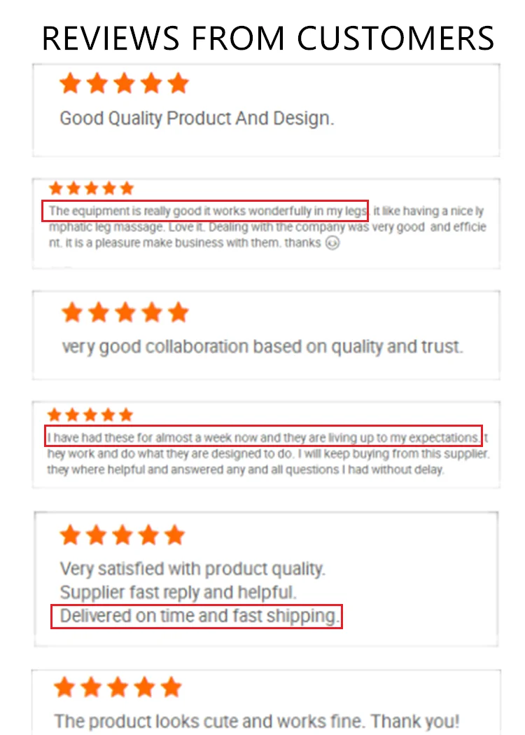 Мы занимаемся домашним здоровым массажером и восстановлением спорта более 10 лет. Мы имеем нашу собственную фабрику с 12000 квадратных метров, более чем 100 квалифицированных рабочих, ежегодно получится около 360000 шт. Наши главные продукты включают пневматическую систему компрессионной терапии, массажер для ног под давлением воздуха, массажный пистолет fasica и вибрирующий ролик пены. Мы можем предложить комплексные решения для восстановления спорта.