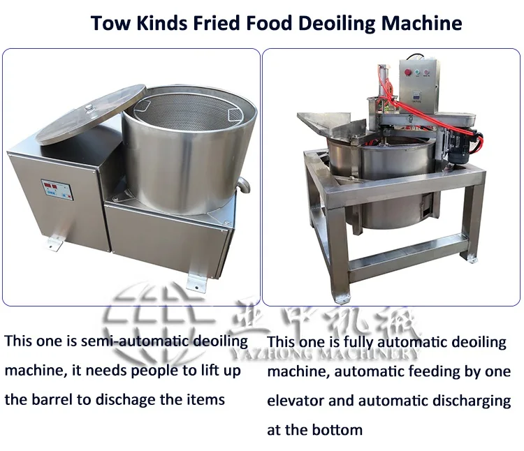 This fried food centrifugal oil removing deoiler machine is an necessary equipment for the fried food and puffed food. It can help the fried food with crisp taste and be healthy, so it is widely used for fried food and puffed food, and also for the work of dehydrated food, fruit and vegetable after washing.