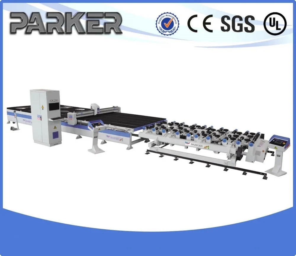 And it has three sections: double turning arms multi-position glass loading seciton, automatic cutting section and flotation severing section.