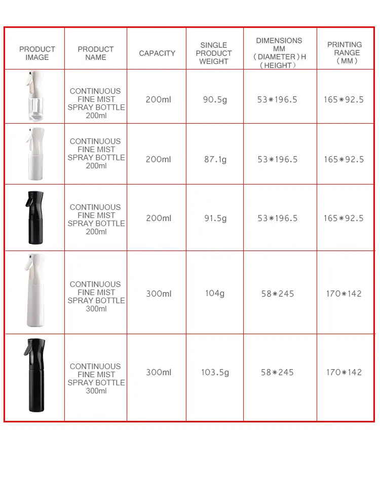 Hairdressing Spray Bottle Information | ||||||