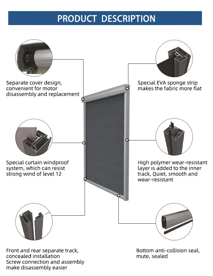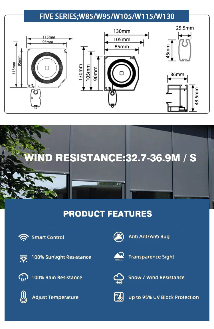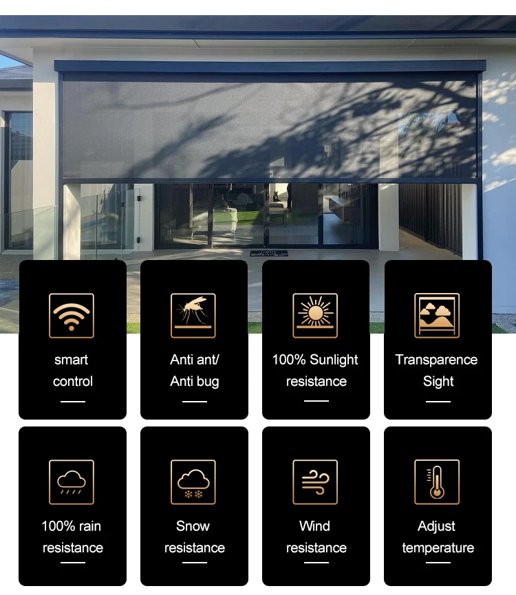 Product name | Outdoor Exterior motorized roller shades patio Zipscreens fabric roller blinds |