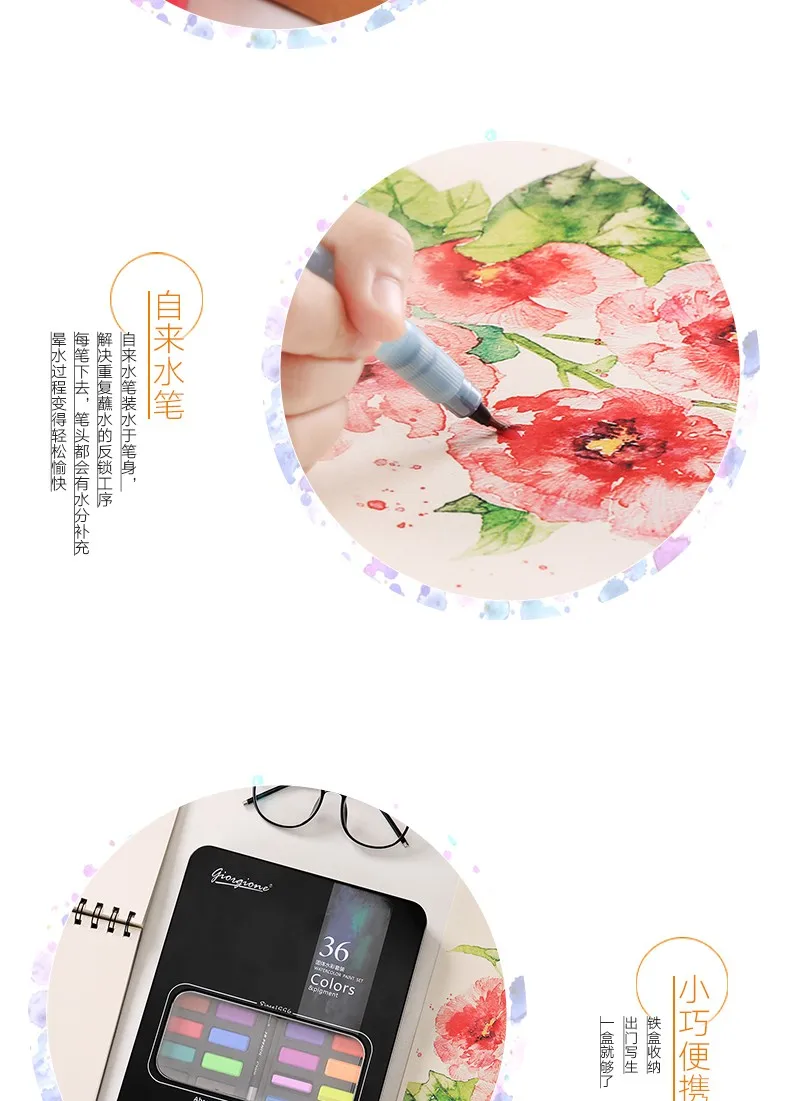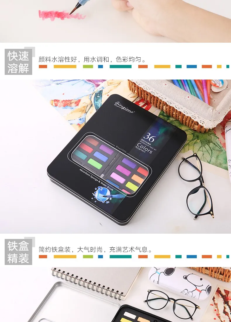 Цвет | 36 Ассорти акварельных красок |
