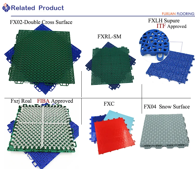 СпецификацияPP интерлок Спорт на открытом воздухе напольное покрытие подвесная поверхность на бетонном полу. Они закрываются достаточно плотно, чтобы сформировать прочную поверхность.