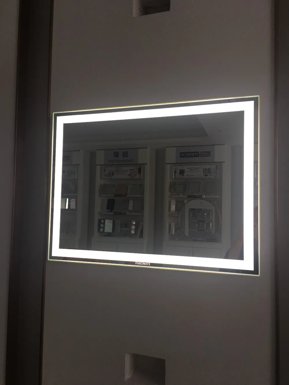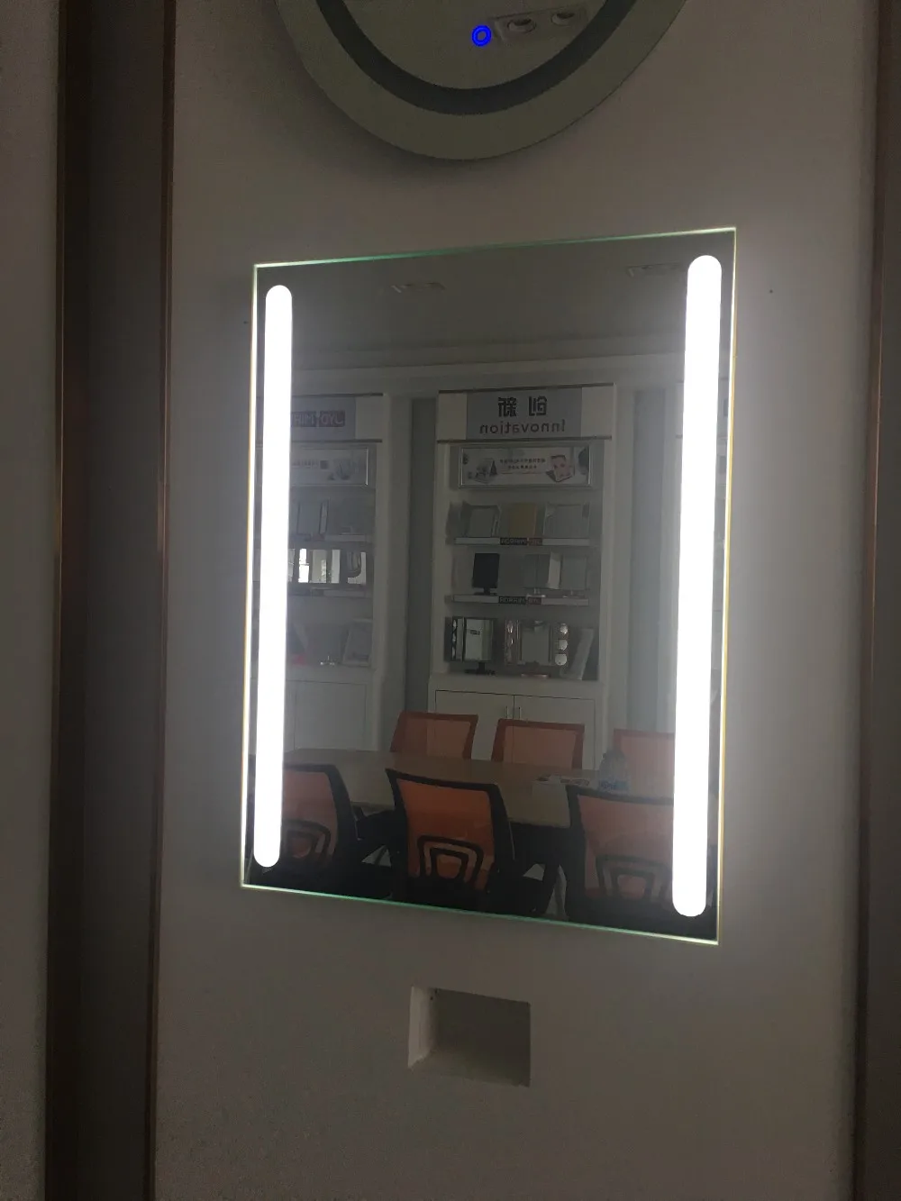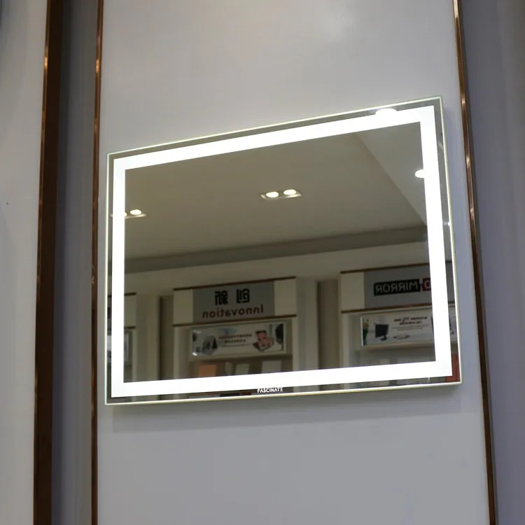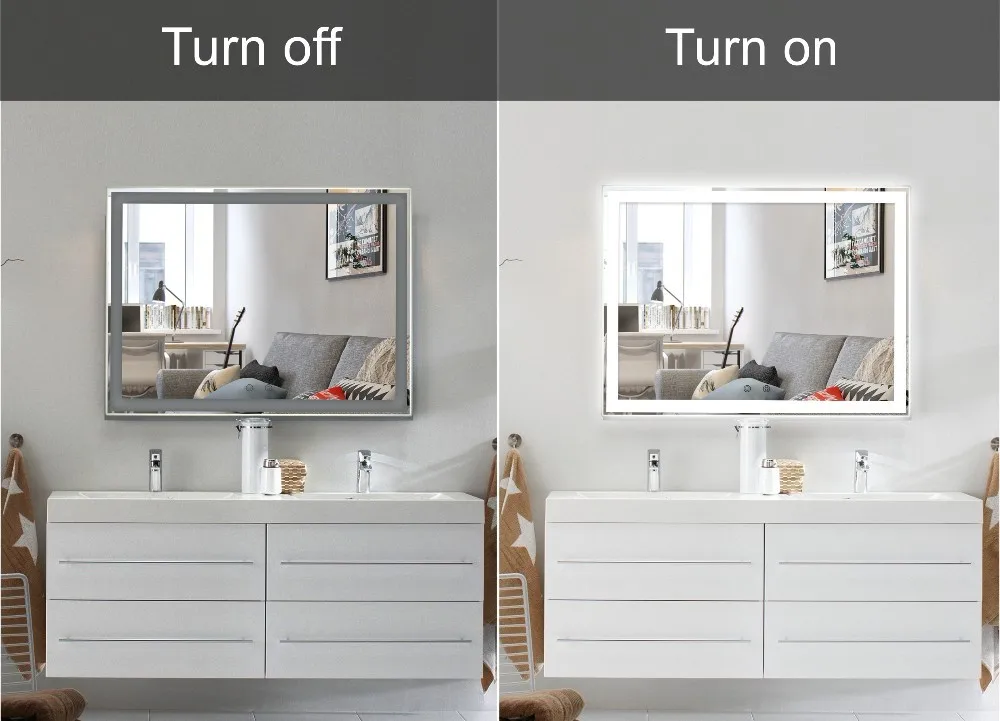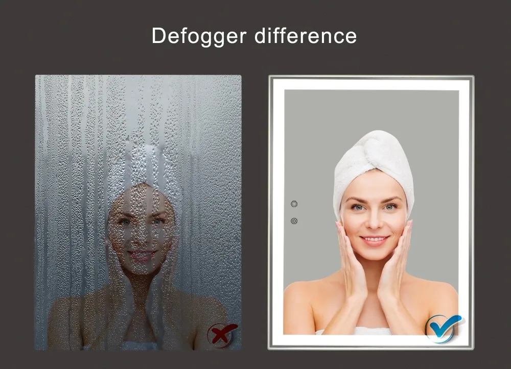 High-end wall-mounted LED bathroom mirror with anti-fog function,uniform lighting around the mirror,size:60*80cm suitable for all kinds of room.Also this mirror has explosion-proof function, waterproof grade is IP54,so you don't need to worried this mirror will be damaged by water.