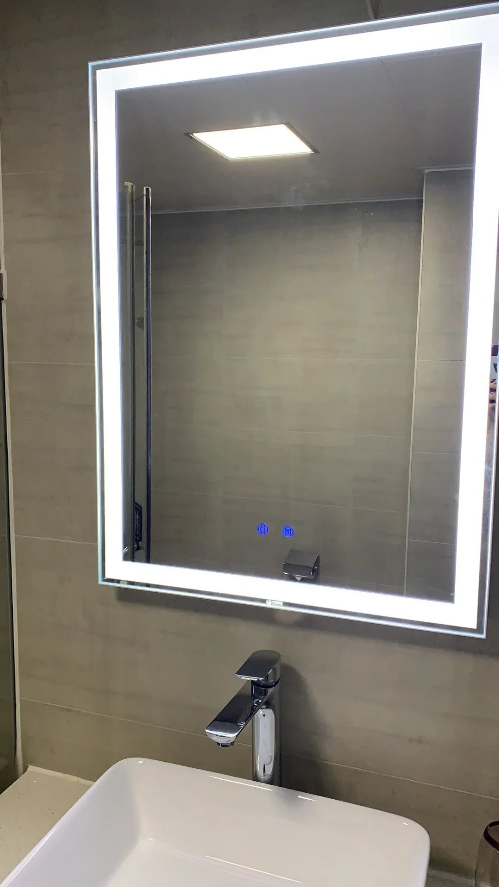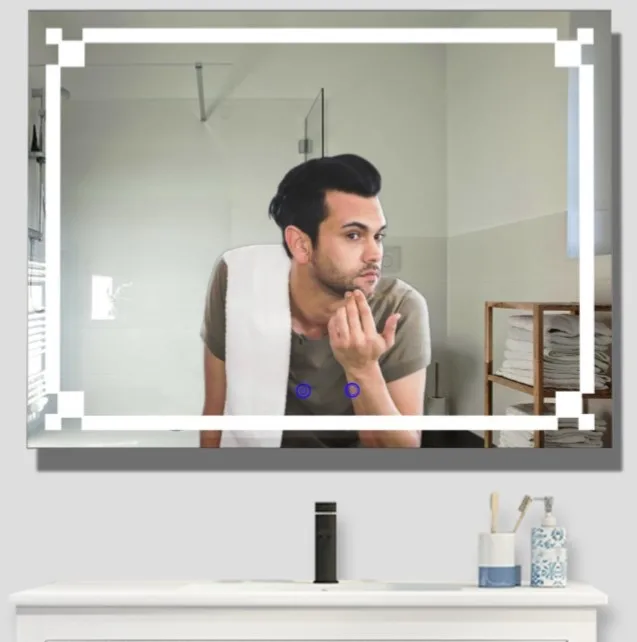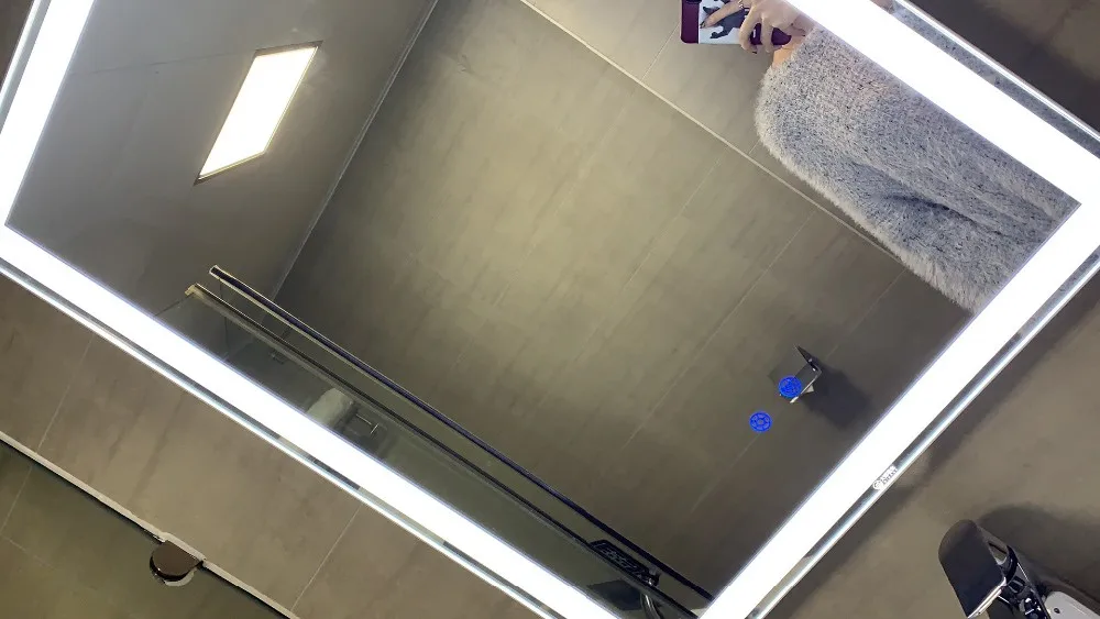 The bathroom mirror is made of 4mm eco-friendly glass mirror with multi-color LED light,support three-color conversion, cool light, white light, and warm light.It is controlled by touch sensor switch,long press to adjust the light brightness,a variety of brightness can be selected, suitable for various occasions and convenient for your life. Touch the button when the power is on is red indicator light, and touch the button when the light is on is blue indicator light.The mirror is powered by a power plug, the power driver is AC100-240V, the LED driver and plug have CE, ROHS certificate, and the mirror casing is made of ABS, which is beautiful, stylish and durable.The mirror has an explosion-proof membrane to prevent people from being damaged by glass fragments when the mirror is damaged.