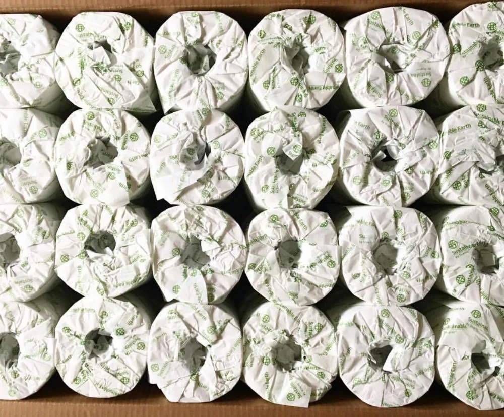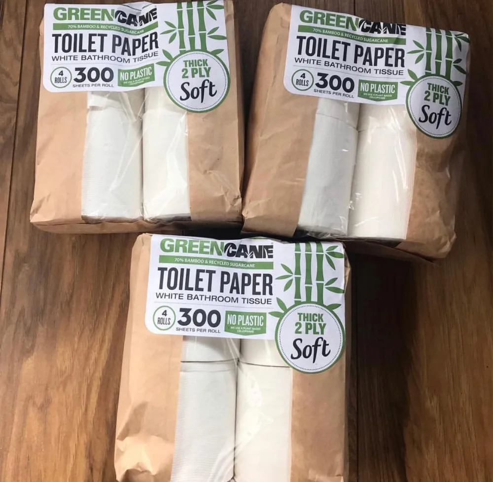 Упакованы в крафт-бумажные пакеты с прозрачным пластиком посередине, каждый с 4 рулонами. Визуально очень отличительные.