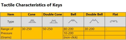 * Various Key Travel and Actuation Forces