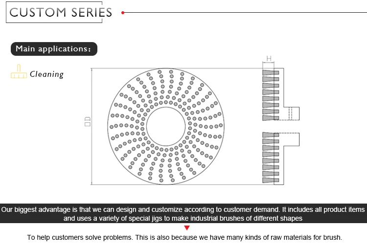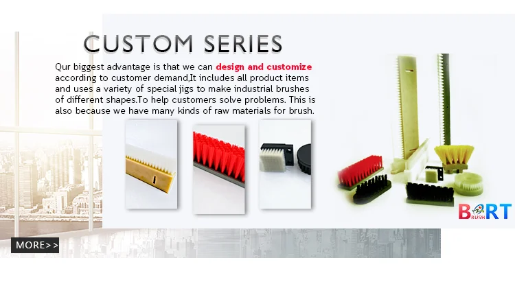 Преимущества: Для поддержки листового металла можно создать большие рабочие зоны для кистей-с контурными или вырезанными зонами, если это необходимо. Нет никаких преград для размера и формы Специальные конструкции возможны, выбирая из различных материалов щетинок или типов щетинок