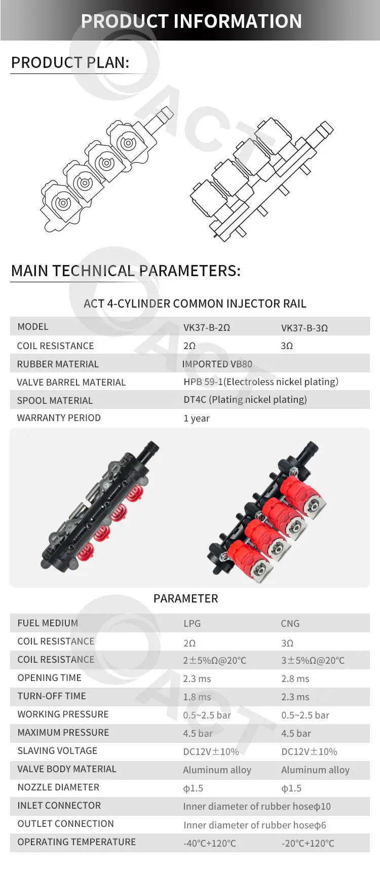 SPECIFICATIONS FOR ACT-V2D Injector Rail | ||||||