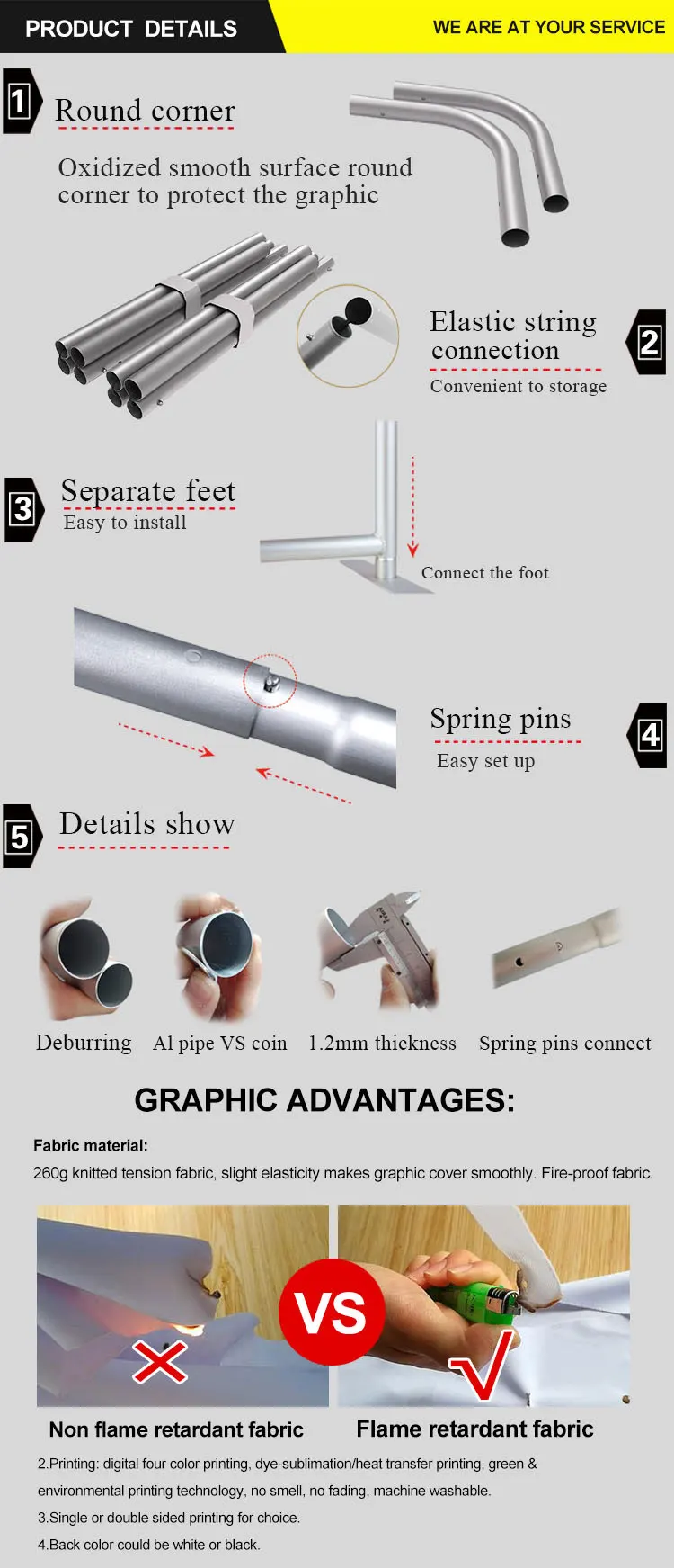 Основная продукция:Натяжной дисплей ткани, всплывающий дисплей, свернутый баннер, ткань/ПВХ баннер, X & L баннер, пляжный флаг, складная палатка,