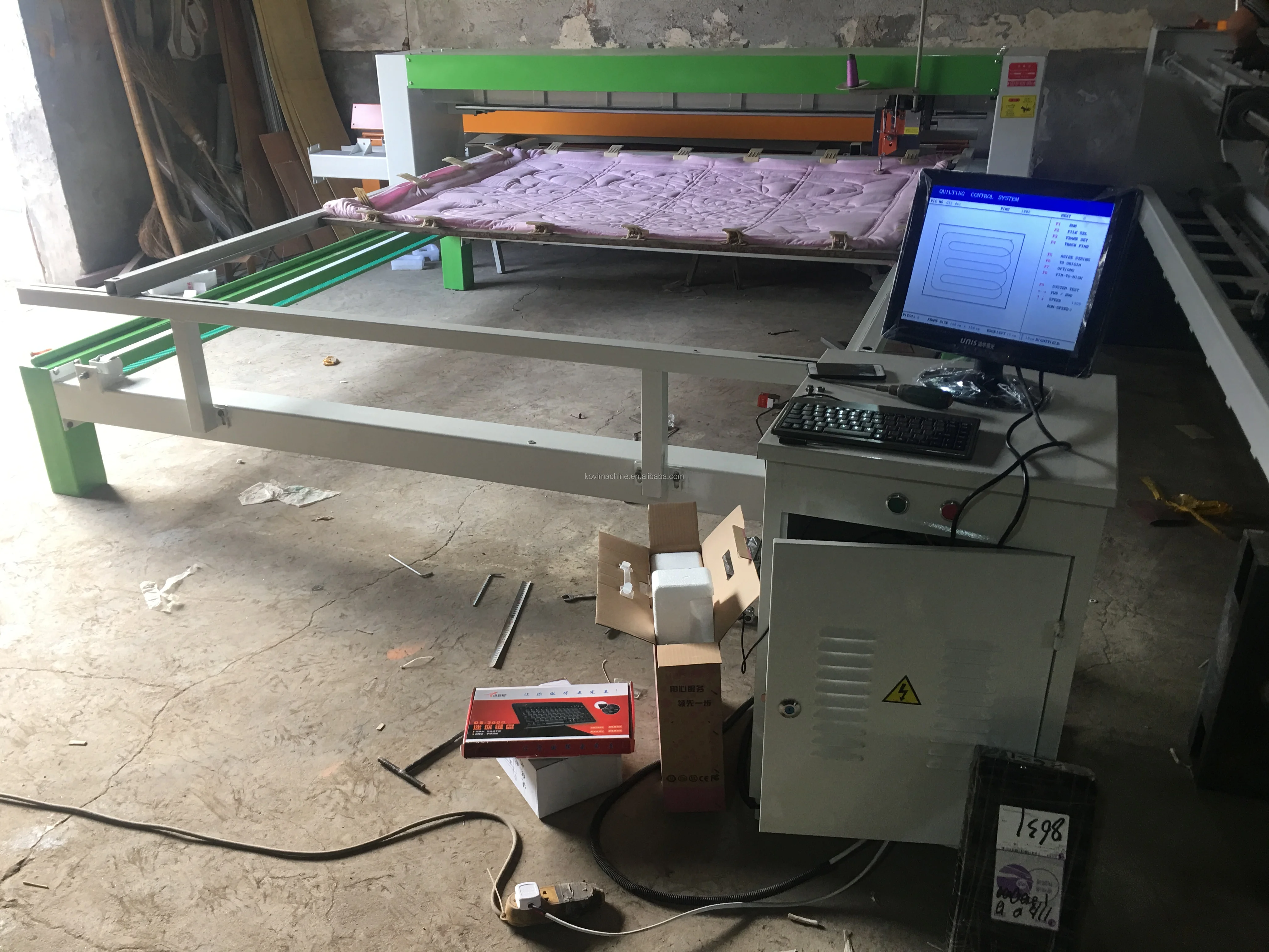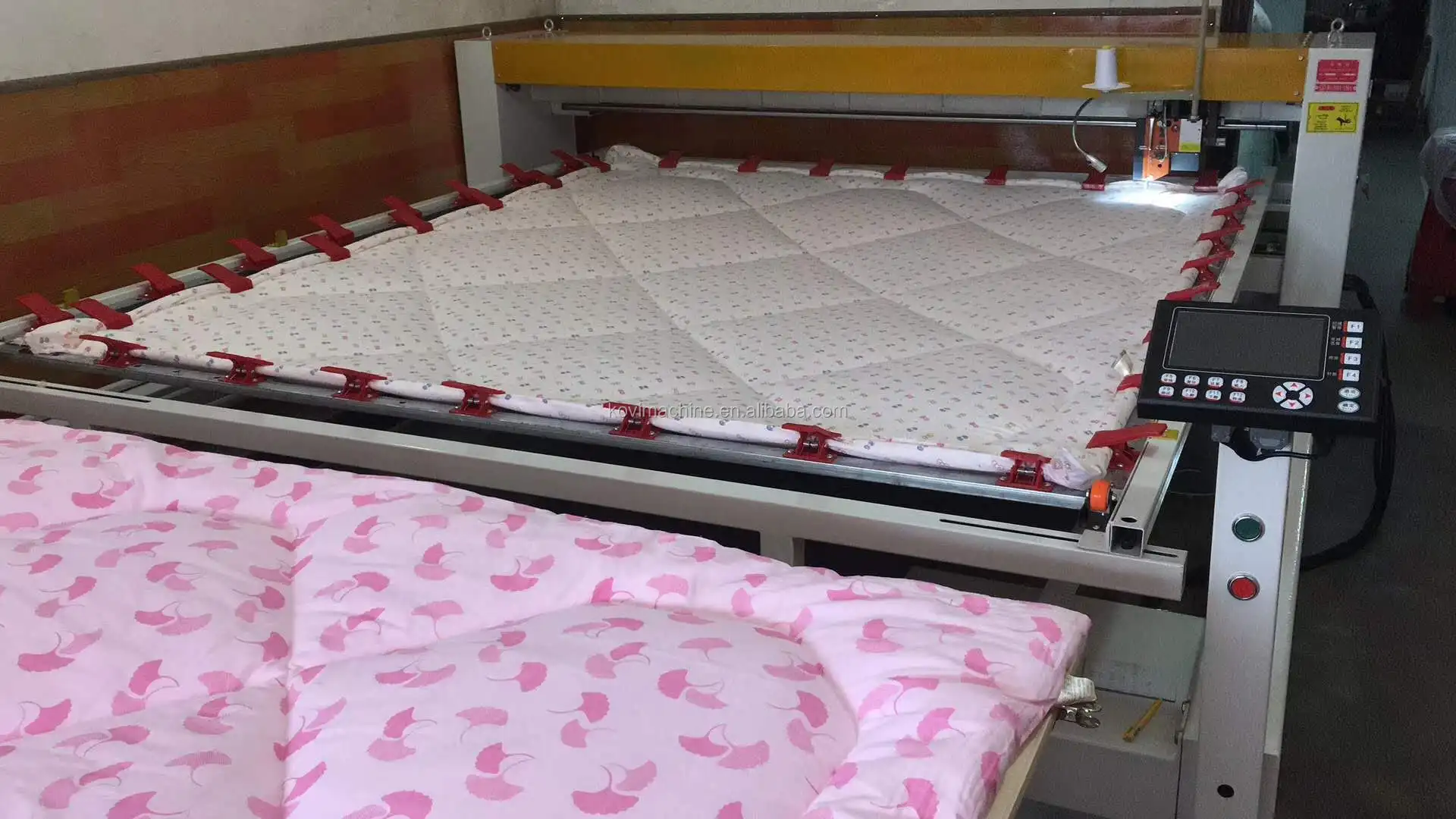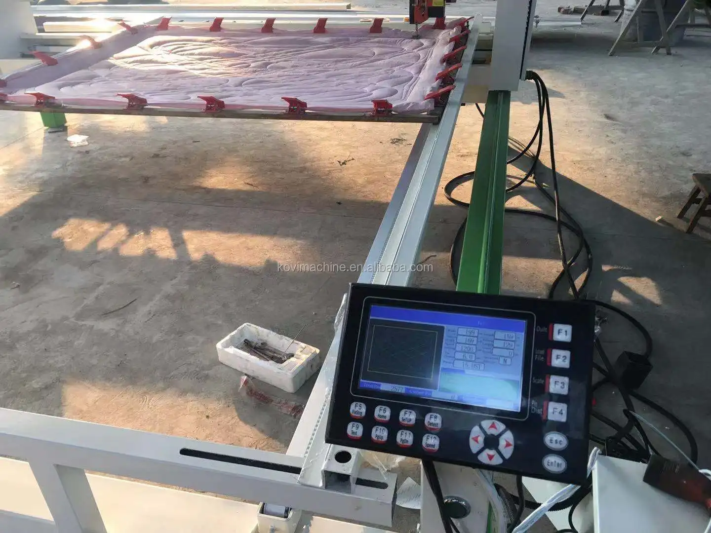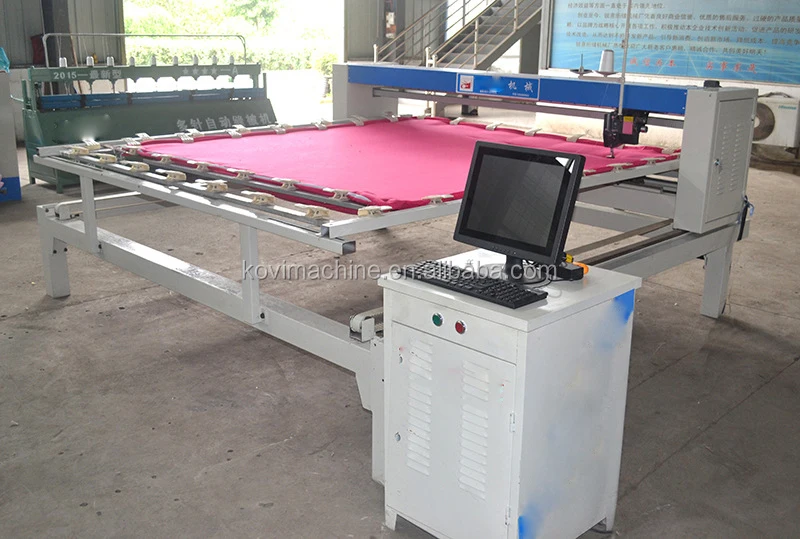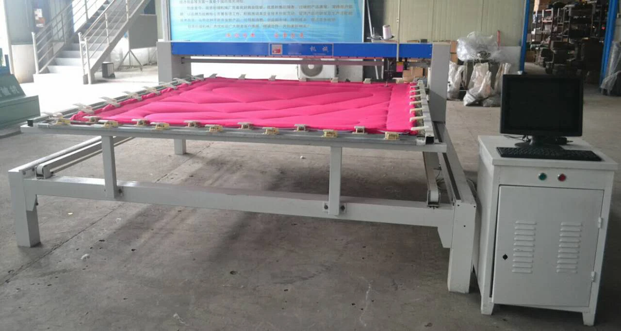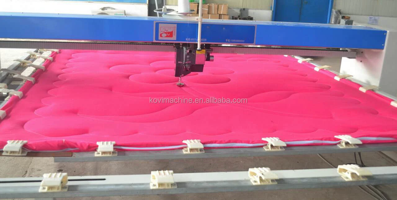 Quilting machine mainly use for quilting mattresses, bedspreads, quilts . The working prrinciple is similar to the sewing machine. (The sewing machine moves: the textile moves, the machine is stationary. The quilting machine moves: the machine moves the textile to be stationary).