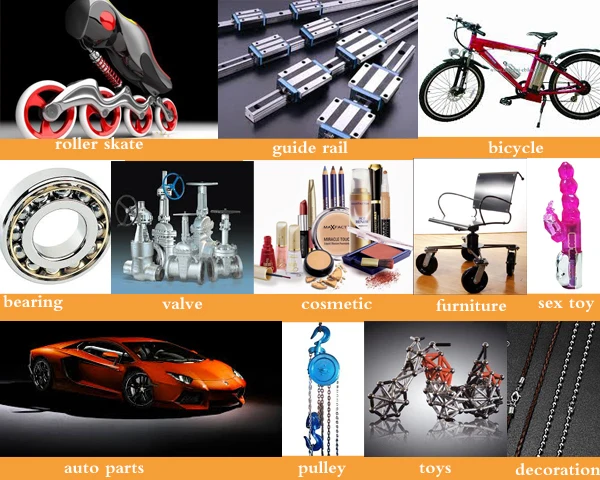 Область применения: шар из нержавеющей стали 304 наиболее широко используется на рынке, он может быть использован в iatrical instrument, химической промышленности, avigation. Пластиковое оборудование: флакон с ароматом, распылитель, клапан, лак для ногтей, переключатель, стиральная машина, холодильник, кондиционер, медицинские материалы, автомобильная фурнитура, подшипник, бутылочка для кормления и так далее.