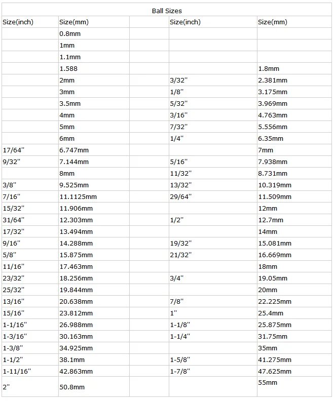 Все стандартные шары всегда в наличии и готовы к немедленному вывозу. Если ваше приложение требует пользовательских шаров, отправьте нам свои спецификации, и мы с радостью их сообщим.