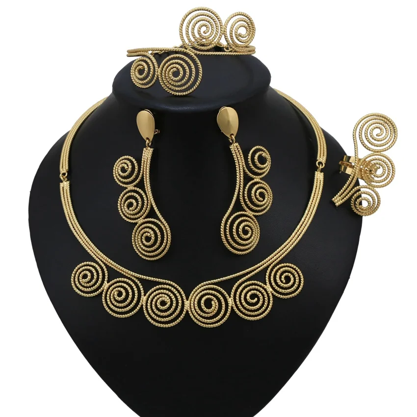 Item name | Latest Dubai Gold-color Jewelry Sets Costume Design Brand Nigerian Wedding Jewelry Set Fashion African Beads Jewelry Sets Women |