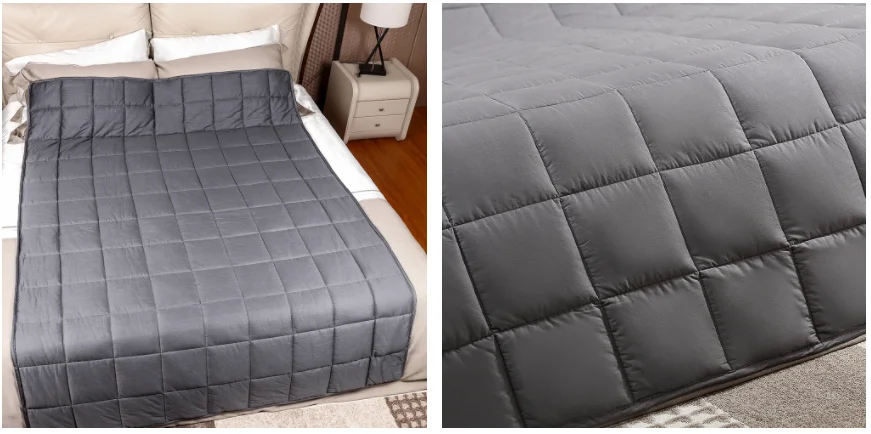 Теперь мы применяем новую технику наполнения для производства нашего одеяла. Бусины внутри одеяла равномерно распределяются между двумя слоями хлопка. С тех пор наши одеяла не будут легко образовывать комок.