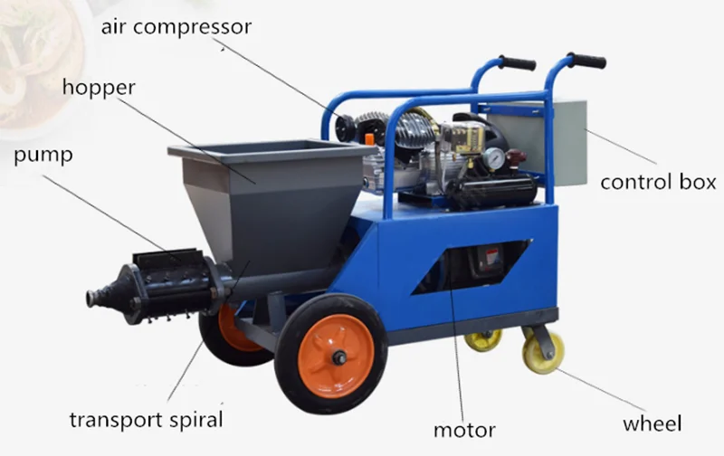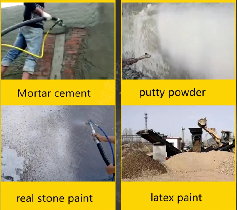 1. подходит для распыления: водорастворимые материалы, такие как шпаклевка, краска, латексная краска, настоящая каменная краска, цементный раствор, сухой раствор, Теплоизоляционный раствор, водонепроницаемый материал, огнеупорный материал, теплоизоляционный материал, звукопоглощающий материал.