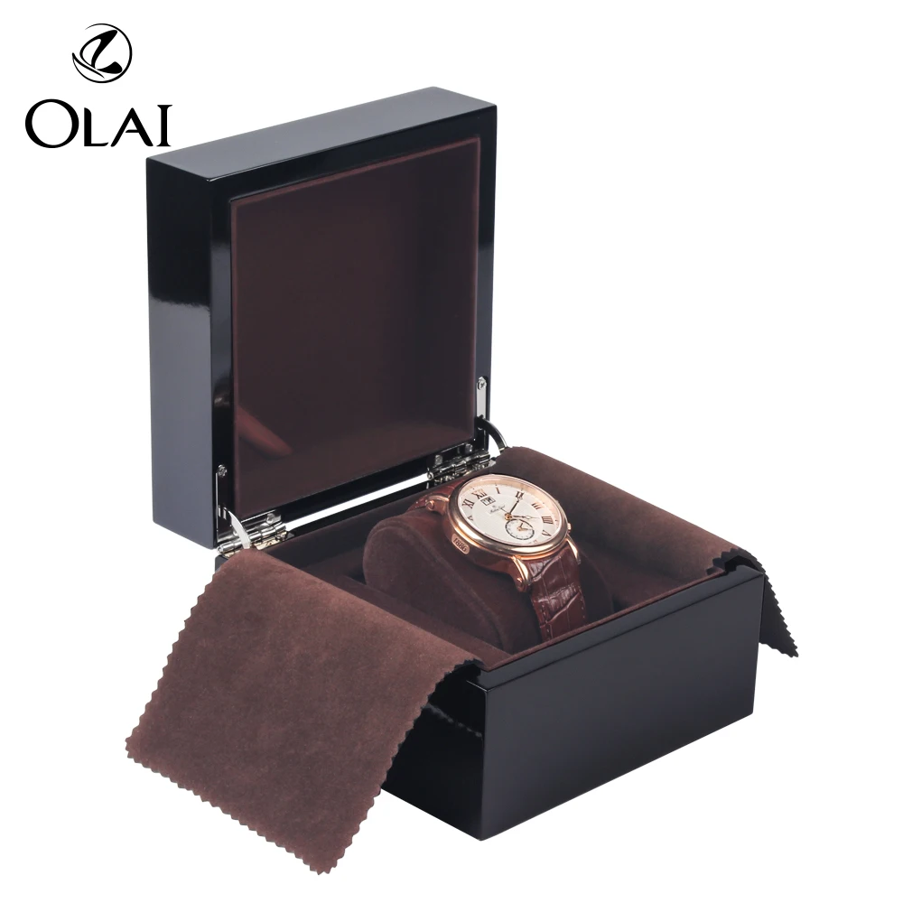 Item | customized black glossy lacquer wooden watch box with brown velvet pillow inside | ||||||