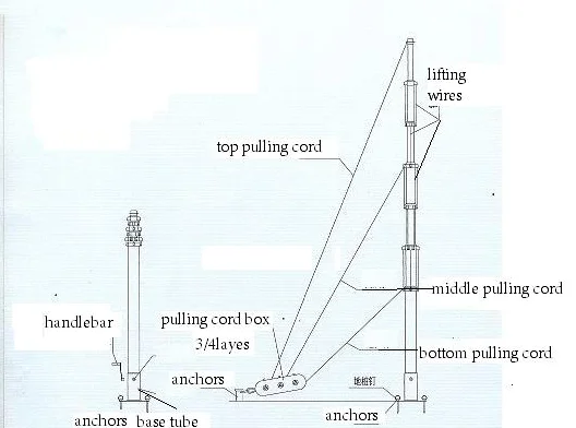 2.Determine the mounting position of telescopic mast if manual and motorized mast hitting one ground anchor per 120 degrees. If pneumatic mast in 90 degree to fix the Guy rope.