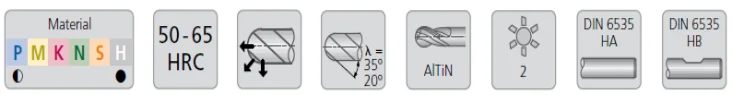 • Large rake angle and unique flute design improve sharpness and chip evacuation.