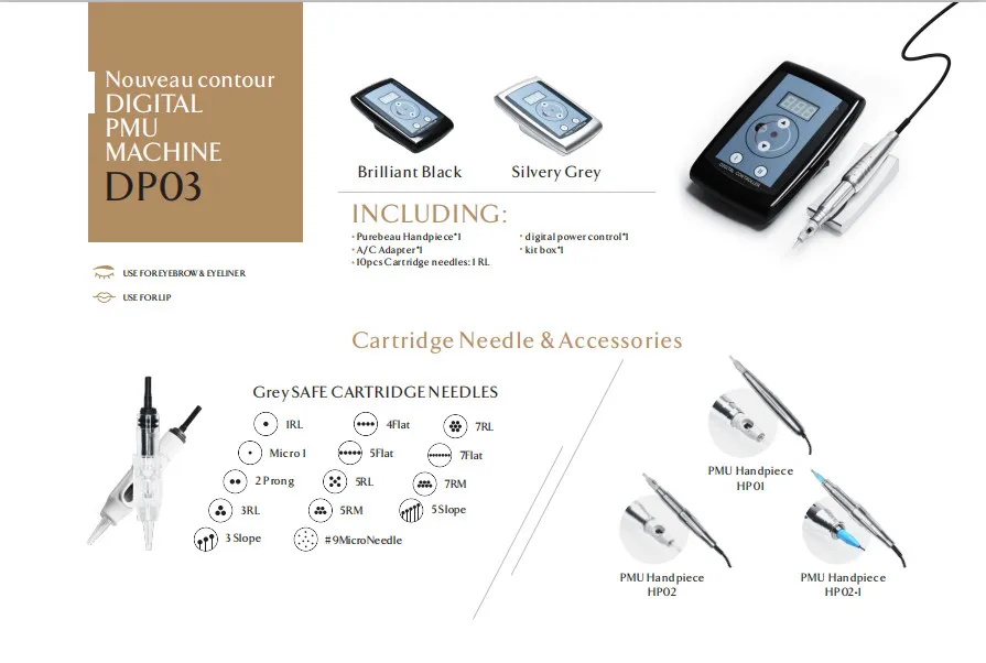Needles | 1RL,3RL,5RL,7RL,Micro 1,2 Prong,3S,5S,4F,5F,7F,5RM,7RM | ||||||