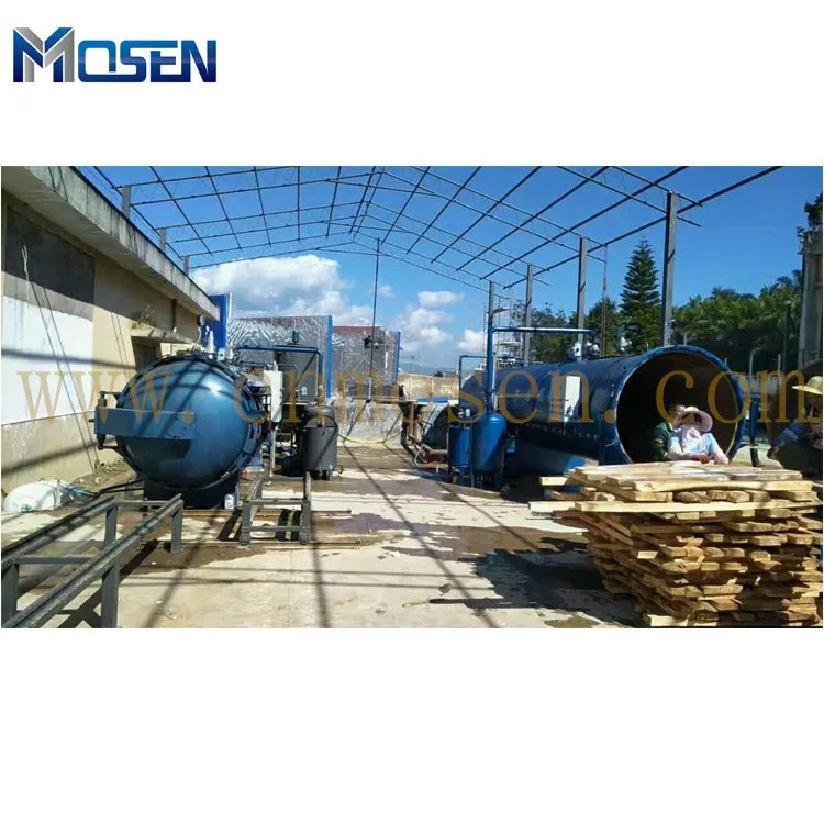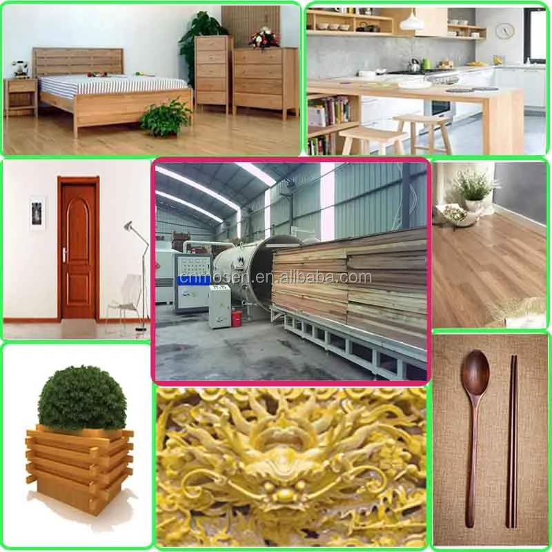 wood impregnation/vacuum/pressure / preservation / staining/autoclave is a wood preservative, coloring key equipment; Wood in the tank through the pharmaceutical infusion, pressure infiltration, vacuum drying and other processes, can effectively prevent the wood rot fungi and other bacteria caused by mildew corrosion; Can effectively prevent the destruction of wood by insects such as termites, wood drilling insects and other animals. Add different agentia at the same time play a flame retardant and coloring effect. Greatly improving the service life of wood and its application. Anticorrosive, flame retardant wood is widely used in indoor furniture, wood, antique garden construction, railways, mines, dock protection wood, pile of timber construction and other occasions.